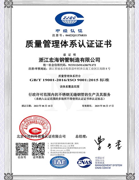 浙江宏海鋼管制造有限公司(前身為溫州市皓立不銹鋼有限公司)成立于2016年11月,公司注冊(cè)資金5180萬(wàn)元,是一家集生產(chǎn)、銷售與一體的不銹鋼無(wú)縫鋼管及制品的民營(yíng)企業(yè)。公司位于風(fēng)景秀麗的甌江上游,有“江南桃源秘境”之稱的麗水市松陽(yáng)縣江南工業(yè)區(qū);交通便利,離松陽(yáng)高速出口僅4公里,離衢寧鐵路松陽(yáng)站僅2公里;占地面積30余畝,總投資9000多萬(wàn)元。